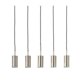 Material: Metall, beschichtet Farbe: Silber Abmessungen: B 75 cm T 8 cm H 24 cm Je D 8 cm höhenverstellbar bis max. 120 cm Leuchtmittel: 5 x GU10, max. 35 W Dimmbar in Kombination mit dimmbarer Lichtquelle und externem Dimmer. Perfekt geeignet für die Beleuchtung über langen Esstischen.