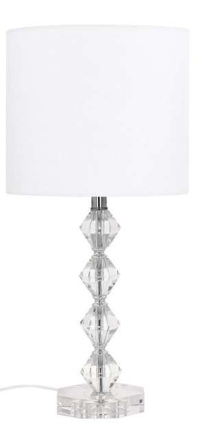 Material: Kristallglas Lampenschirm: Textil Farbe: weiß, klar Abmessungen: D 25 cm H 53 cm Leuchtmittel: E 27 max. 40 W